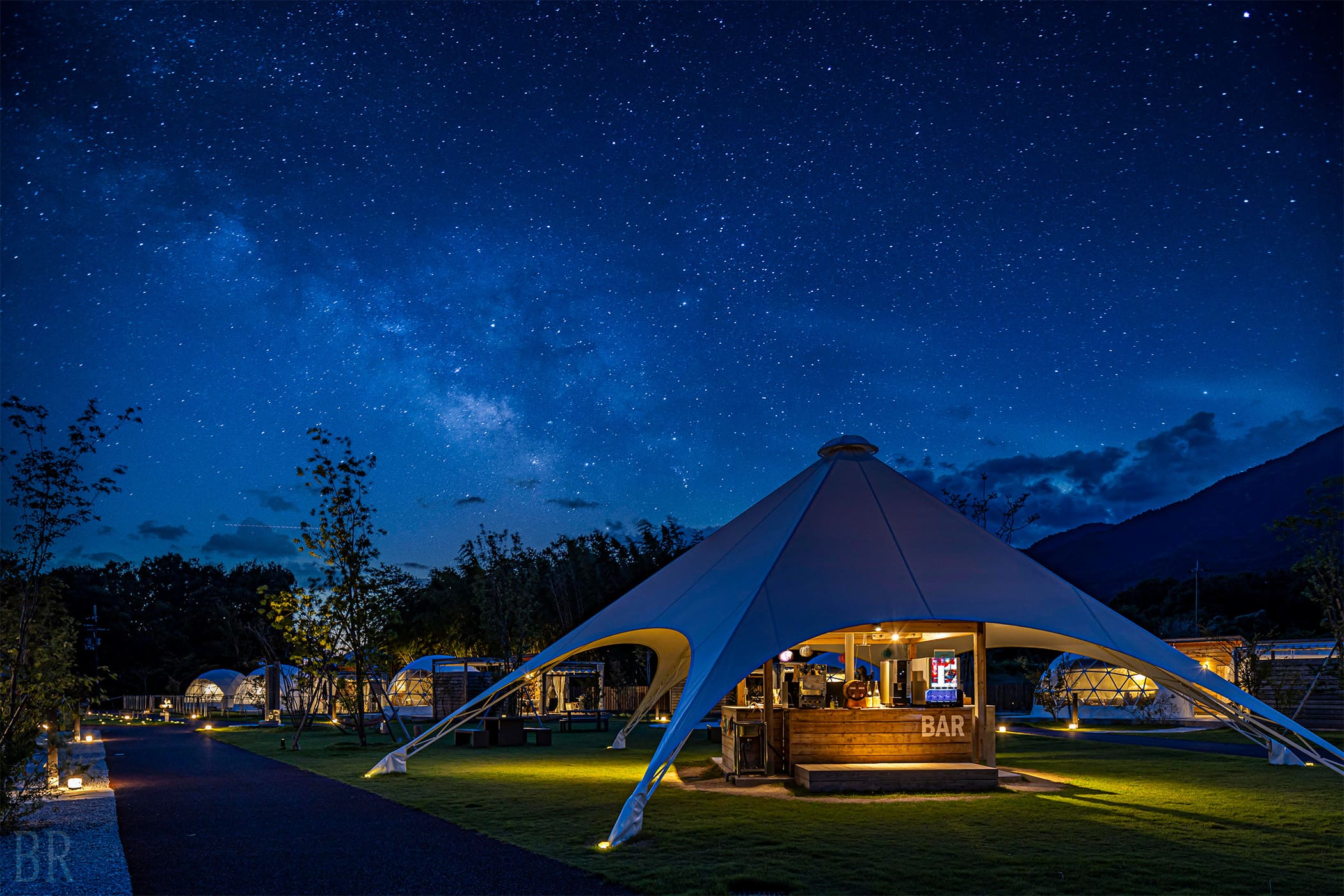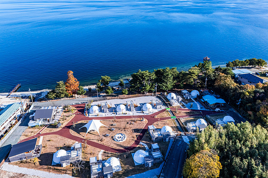 建築基準法に適合した安全性の高いドームテントでは、最大4名迄宿泊可能なレイクビュータイプ、露天風呂付きタイプ、愛犬と泊まれるタイプの3バリエーションと最大6名迄宿泊可能なスイートヴィラ棟を常設。ファミリーは勿論の事、女子旅やカップル等にも楽しんでいただける空間演出を行い、自然の恵みを満喫しながら。大切な人との思い出に残る食事と時間を提供します。また、カフェや一部の宿泊棟のデッキ部分には耐久性の高い天然の屋久杉を贅沢に使用しております。